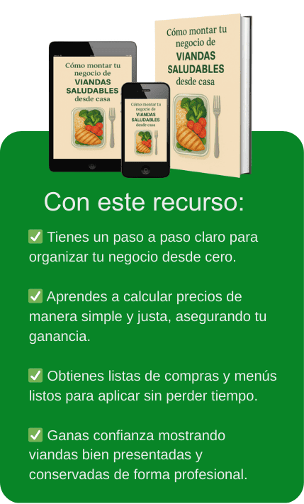 📖 Ebook completo “Cómo montar tu negocio de VIANDAS SALUDABLES desde casa”.